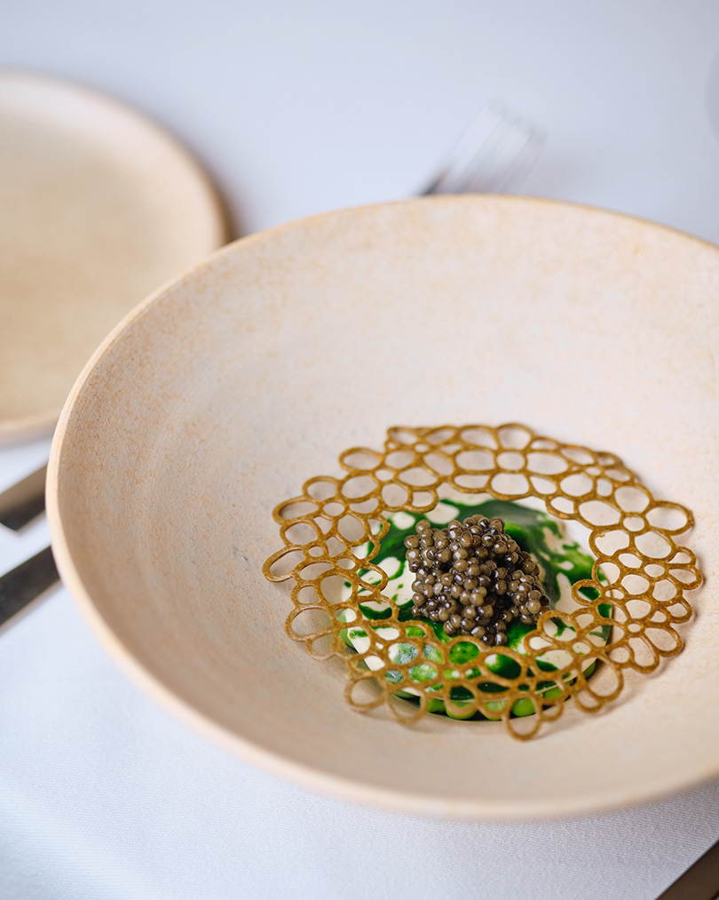 Gold caviar – dashi – asparagus cream