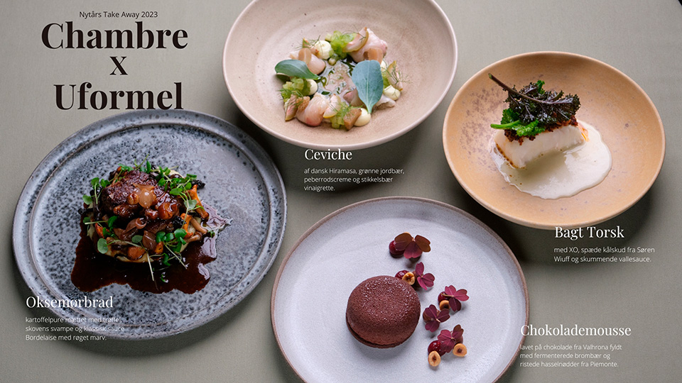 Med Nytårsmenuen fra Uformel X Chambre kan I nyde årets sidste aften uden stress og jag – fejre nytåret med fantastisk mad og hygge, fest og samvær!