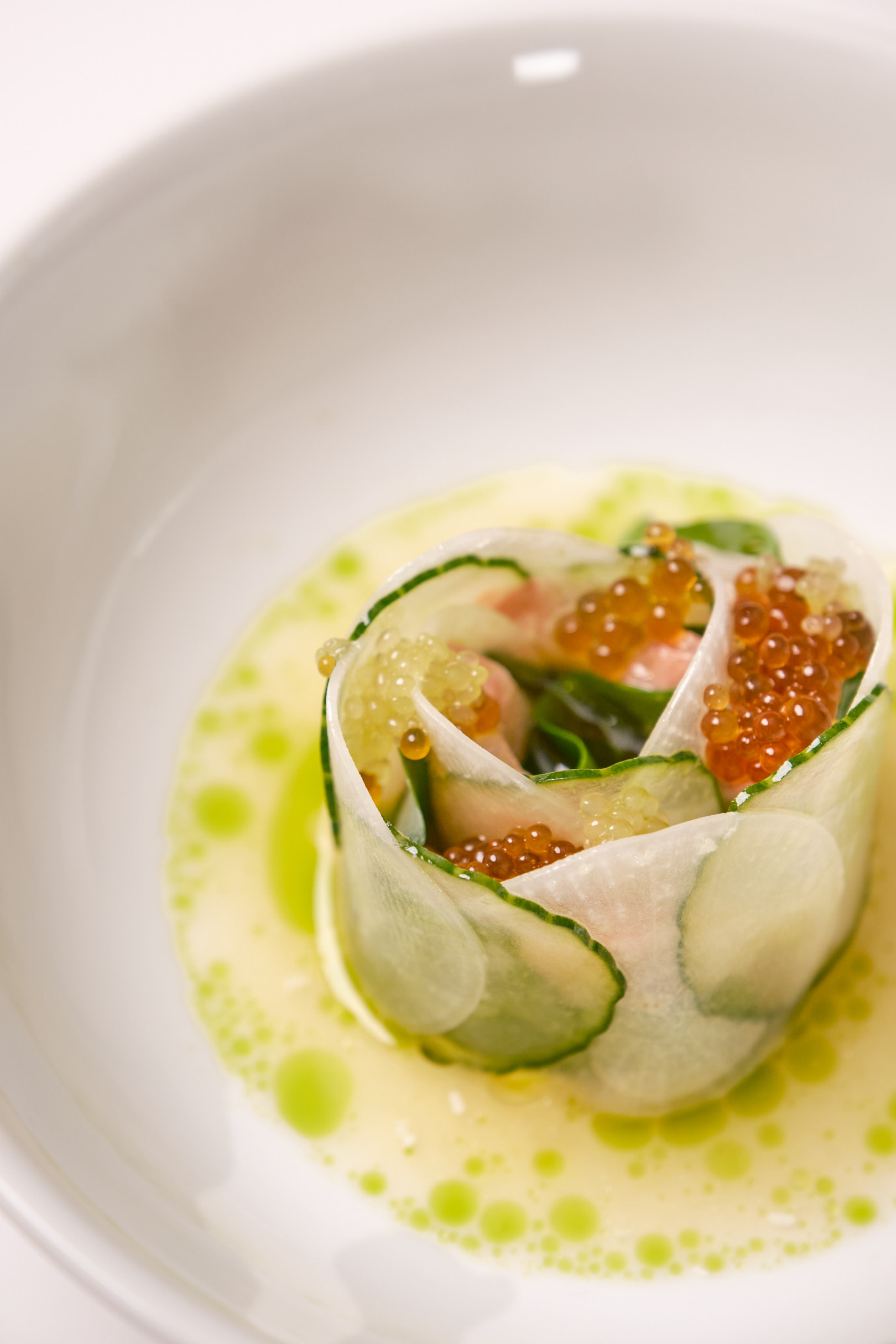 Ceviche af Dansk hiramasa med kinaradise, dashi
